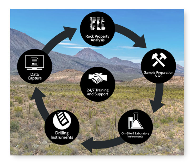 Innovaciones en geociencia que proveen medidas y datos de exploración en la perforación, captura de datos y consumibles.